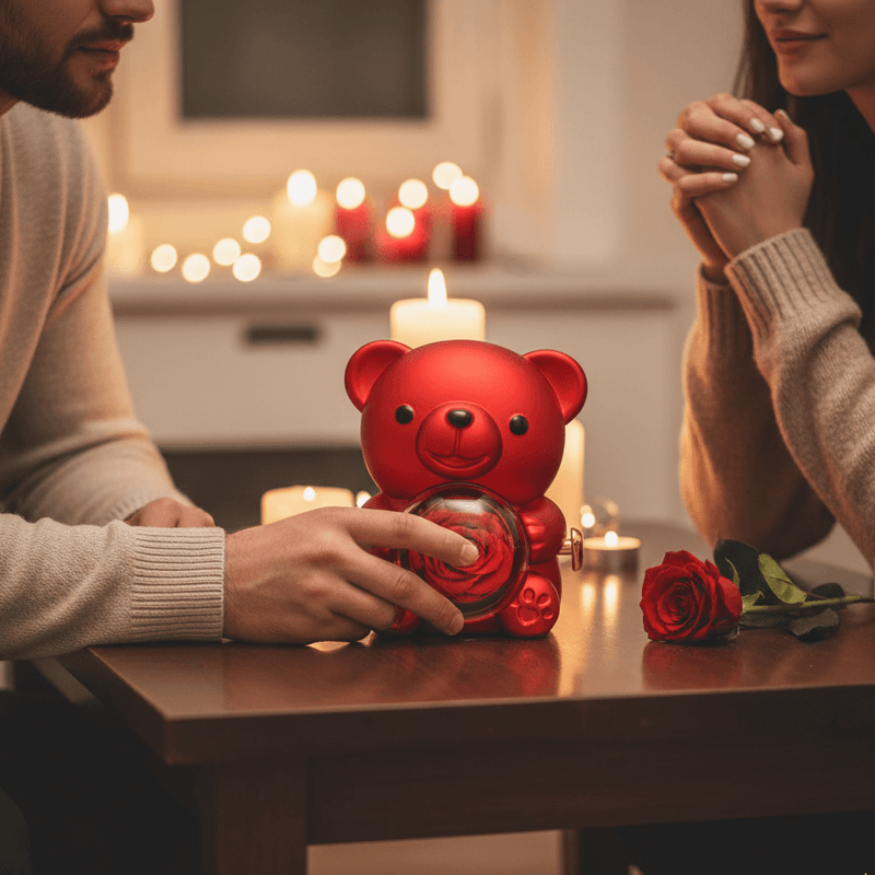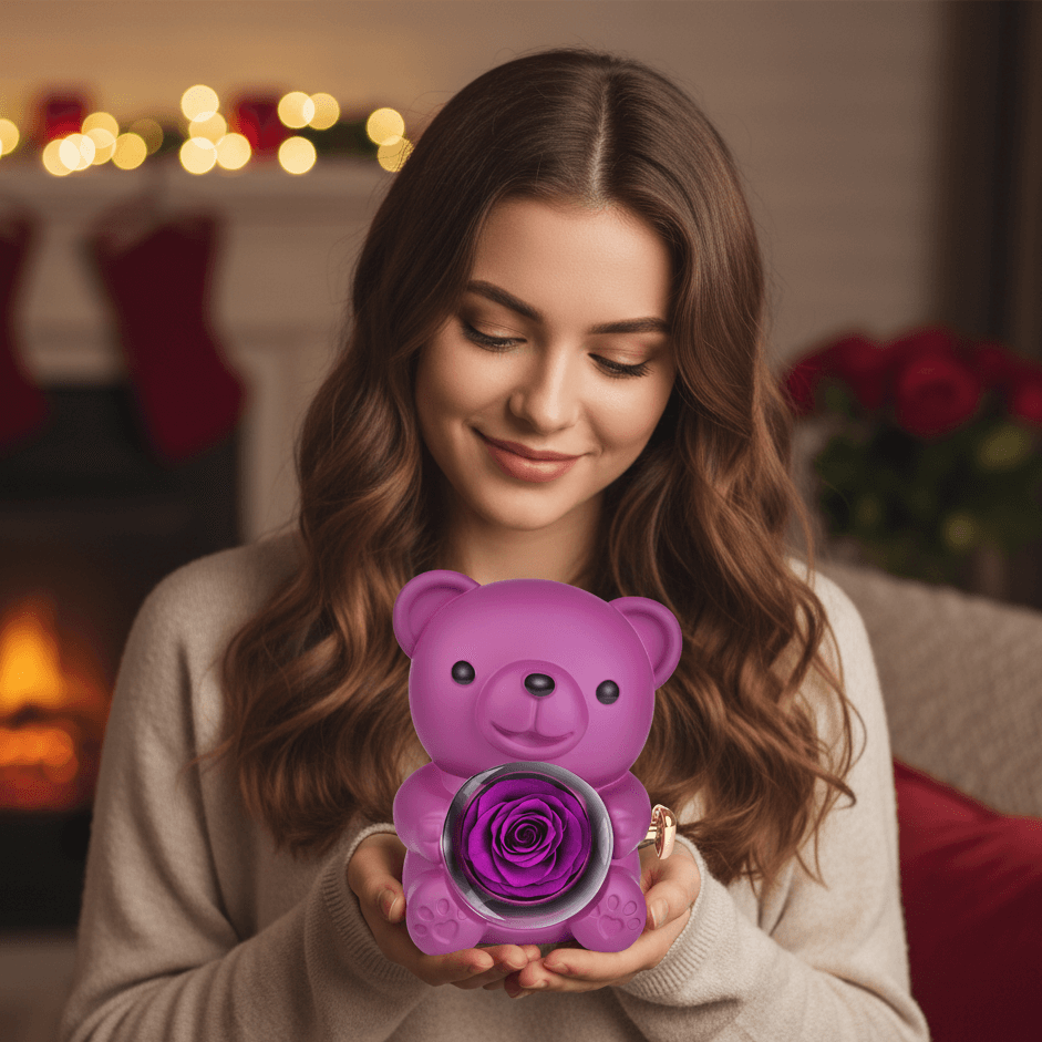 Surprise your loved one with a gift that’s as unique as your love. This Rotating Bear Jewelry Box features a charming bear that gently spins, creating a mesmerizing display every time it moves. Topped with eternal preserved roses, this jewelry box blends elegance, charm, and practicality — a gift that keeps giving.